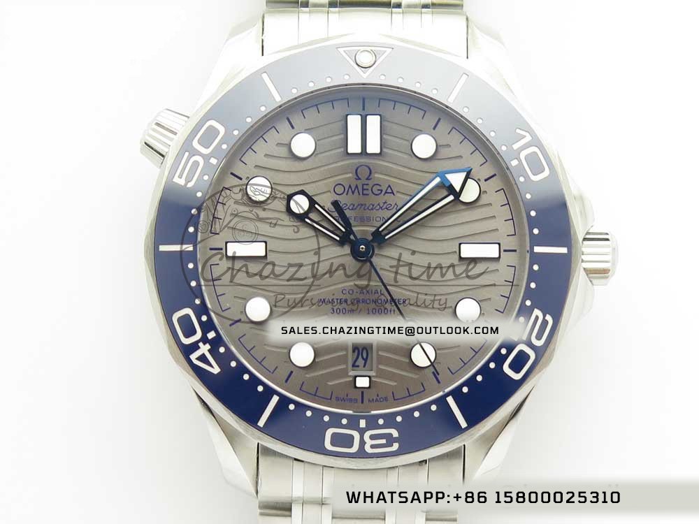 2018 Seamaster Diver 300M OMF Best Edition Blue Ceramic Gray Dial on SS Bracelet A8800 (Black Balance Wheel)