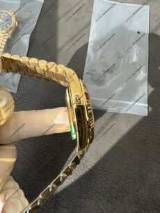 | Strap | 18K yellow gold plated solid 904L stainless steel bracelet, Cu-W metal to increase watch weight to match the genuine gold watch weight, same weight as genuine watch with Deployant clasp |
