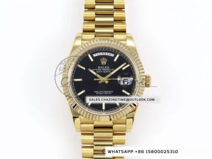 Day Date 40 YG JDF Gain Weight 904L Steel Black Stick Dial on President Bracelet VR3255 V3 $657.80