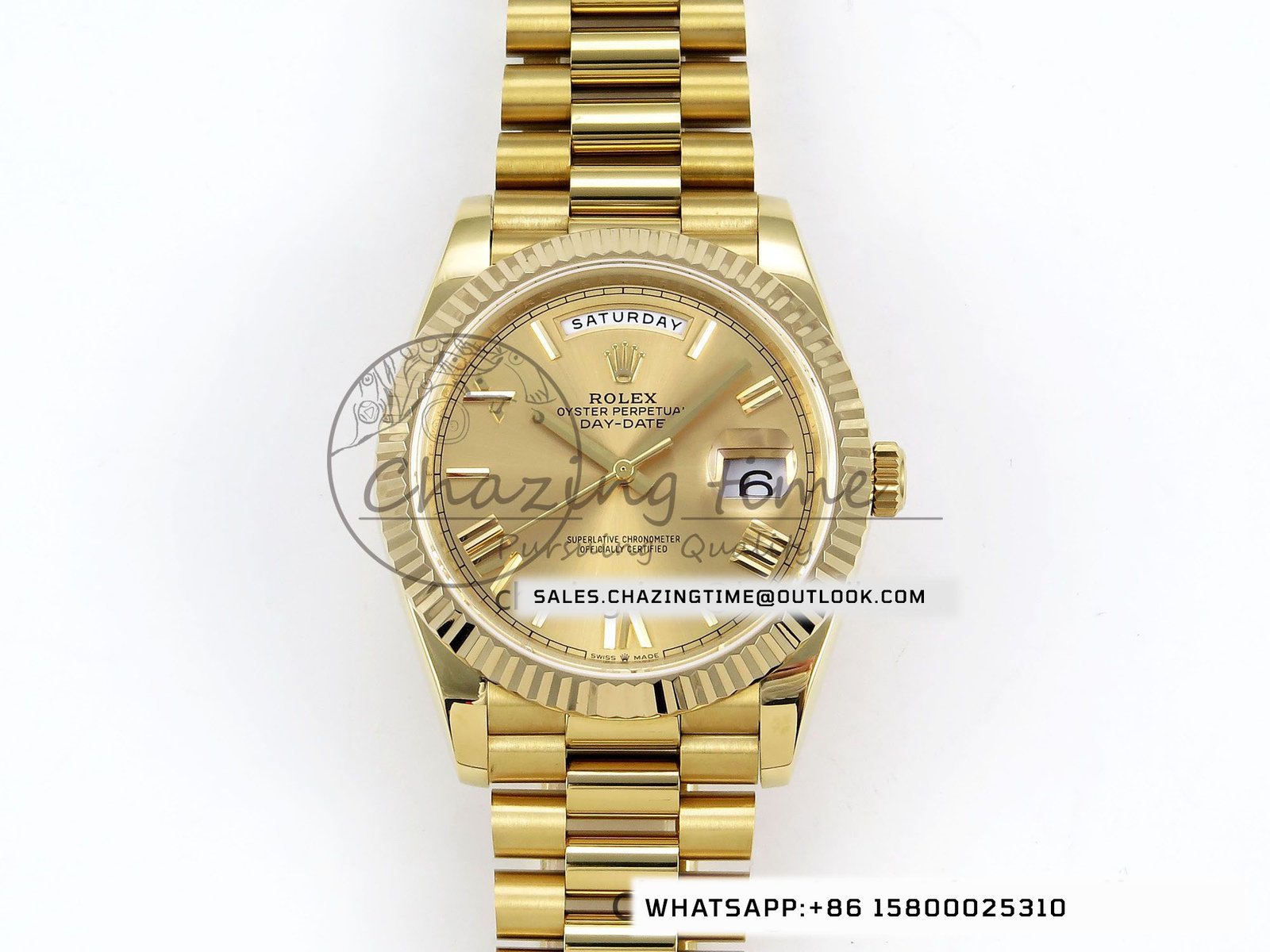 Day Date 40 YG JDF Gain Weight 904L Steel YG Big Roman Dial on President Bracelet VR3255 V3