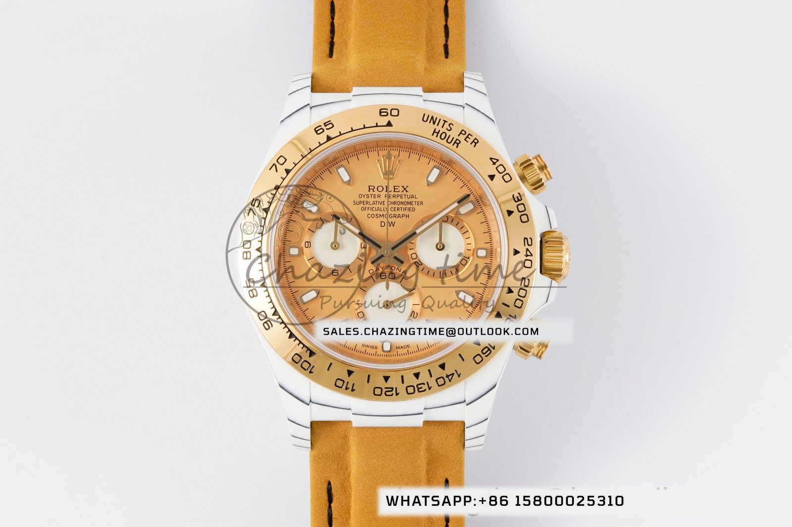 Daytona DIW White Carbon Case YG Bezel DIWF Edition YG Dial on Brown Leather Strap A7750