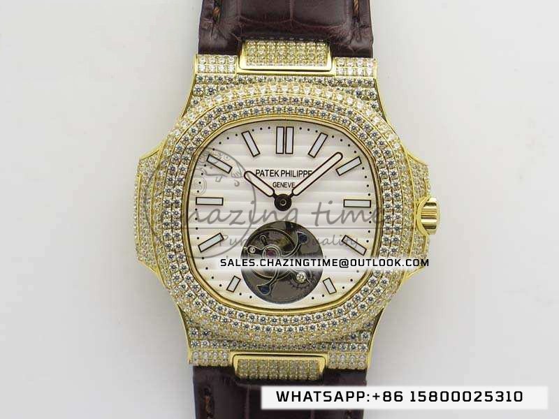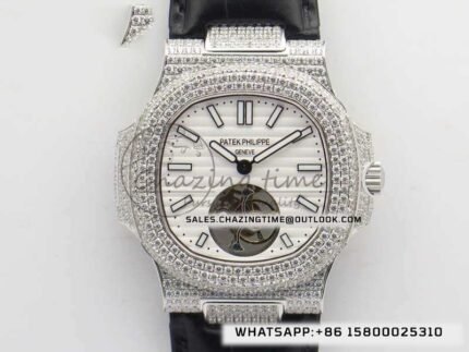 Be the first to review “Nautilus Jumbo 5711 Tourbillon YG Full Paved Diamonds White Dial On Brown Croc Leather Strap” Cancel reply