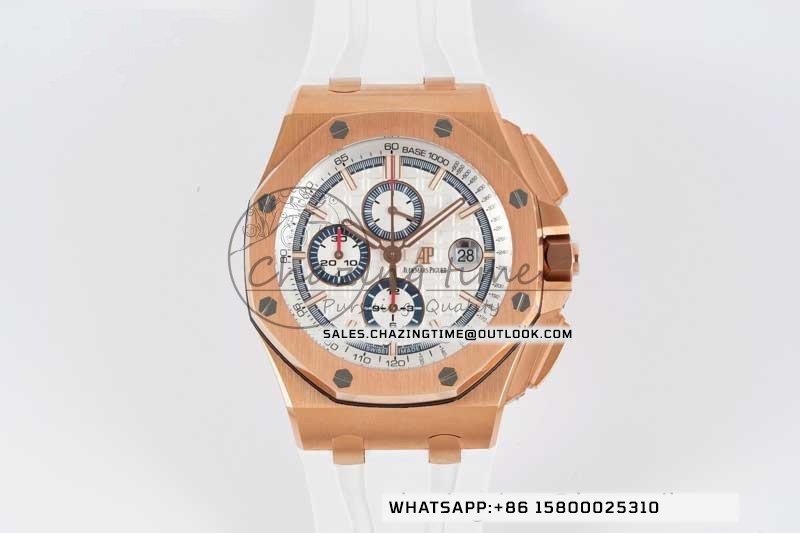 Royal Oak Offshore 44mm RG JJF 1:1 Best Edition White Dial on White Rubber Strap A3126 V2