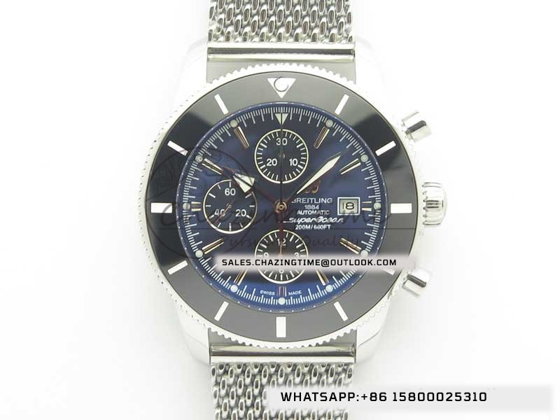 SuperOcean A13312 44mm Black Bezel Blue Dial/Black Subdial on SS Bracelet A7750 $382.80